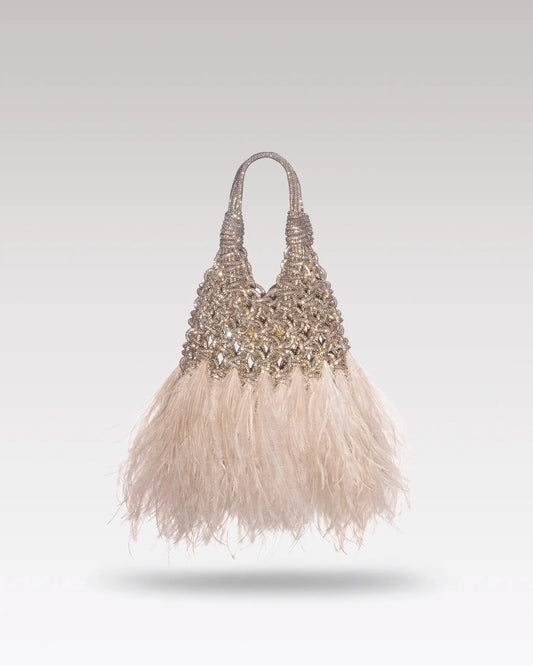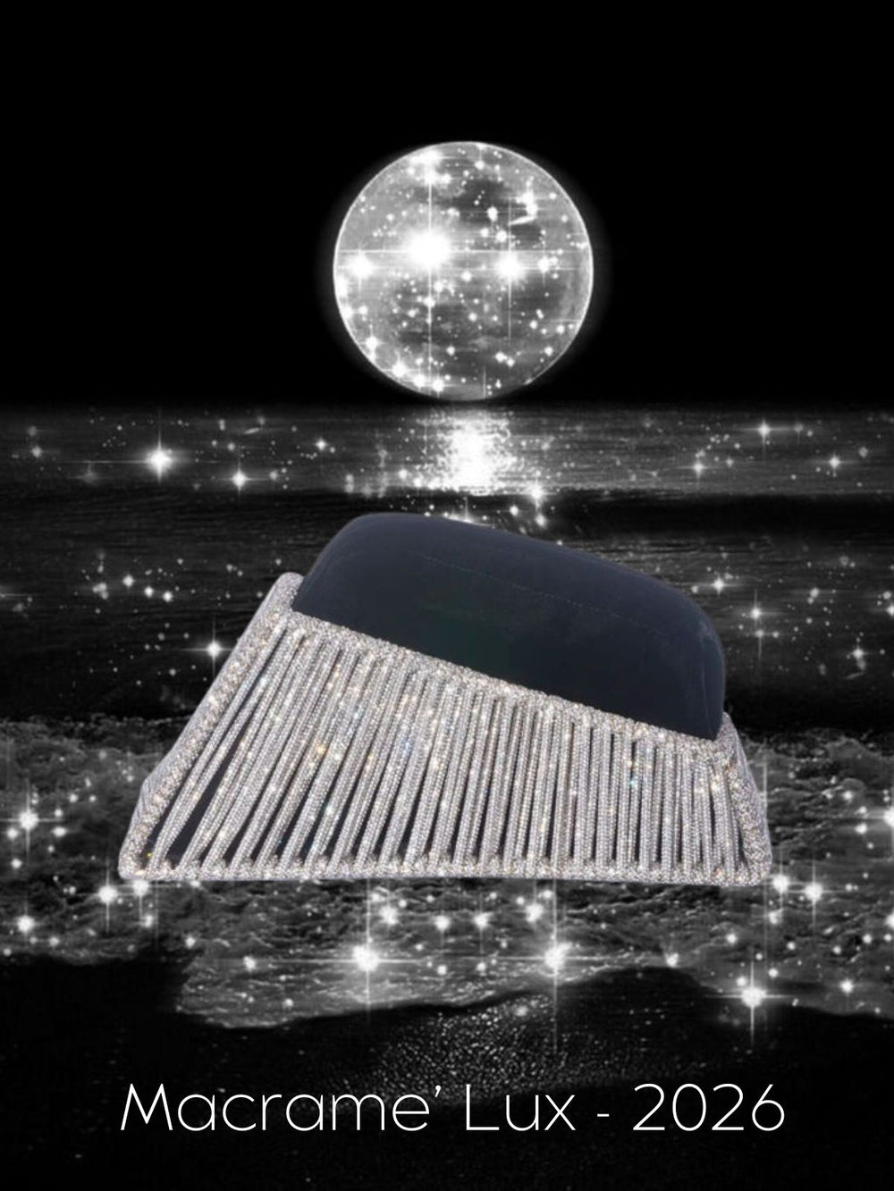 Designed to make an impression, the Fur Lush Bag is a statement accessory crafted with precision and sparkle. Handwoven using shimmering rhinestone cords, its structured semi-circular silhouette offers a refined balance of elegance and modern glamour.