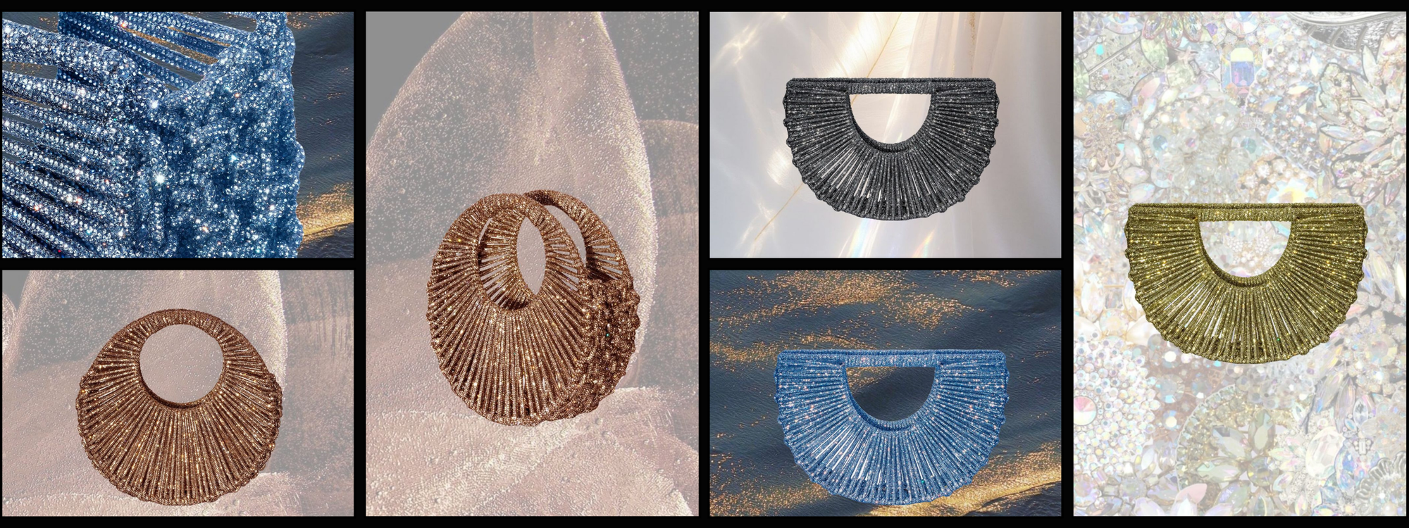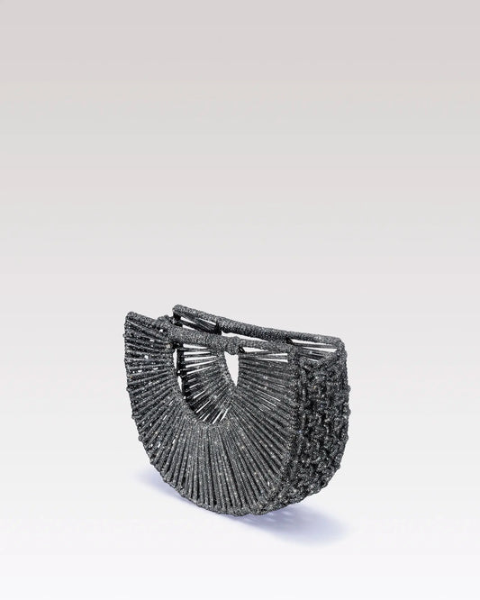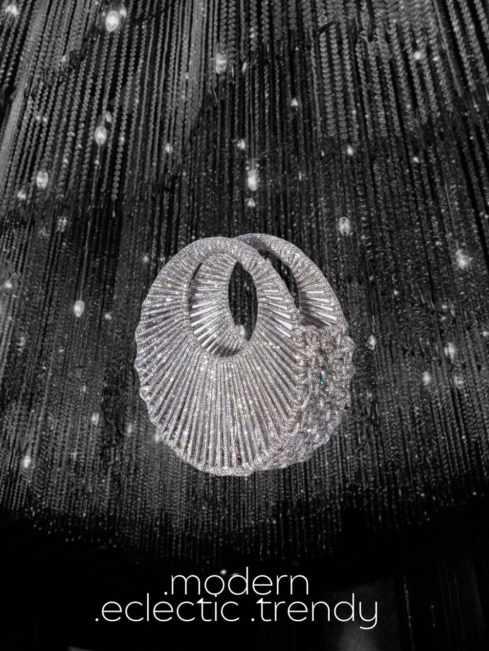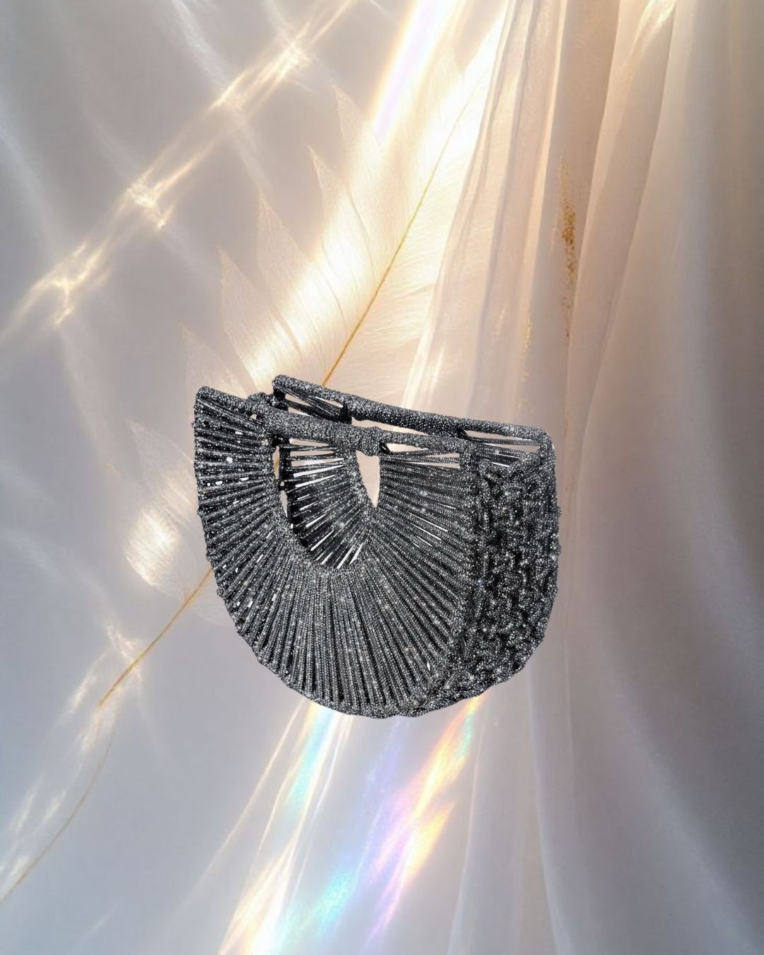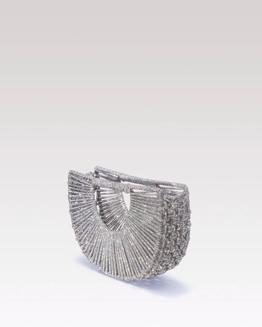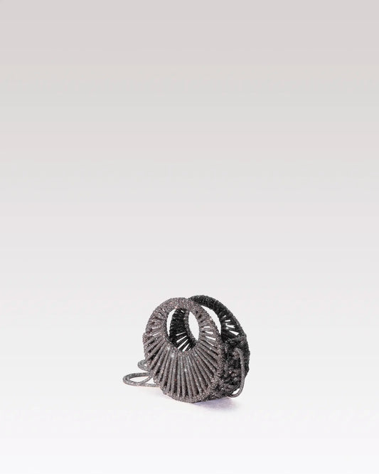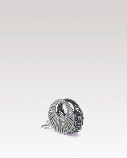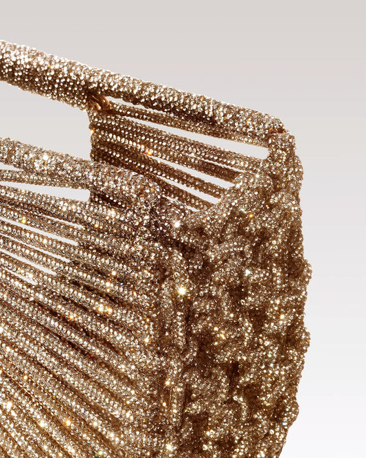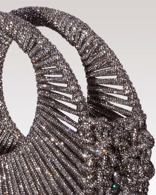 Meet the newest showstopper in evening accessories. The Sara Jewel Mini Bag is an art piece sculpted entirely from hand-strung rhinestone crystal cords, giving it a luminous, liquid-shine effect from every angle.